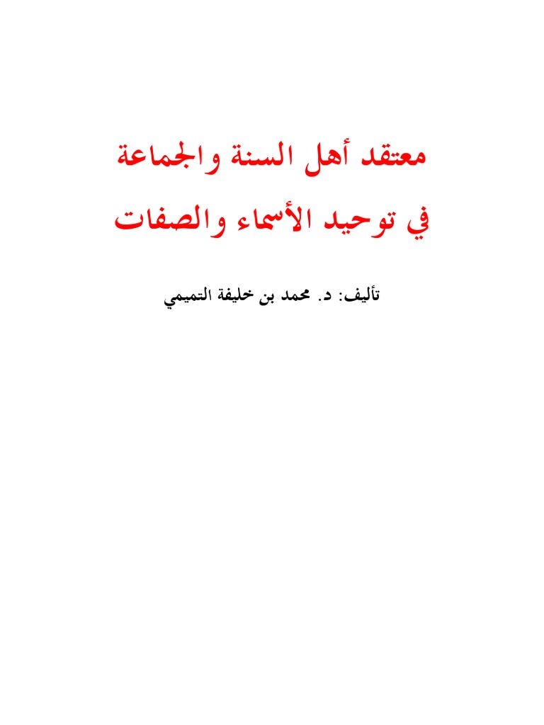 تحميل كتاب معتقد أهل السنة والجماعة في توحيد الأسماء والصفات ط أضواء السلف ل محمد بن خليفة التميمي Pdf