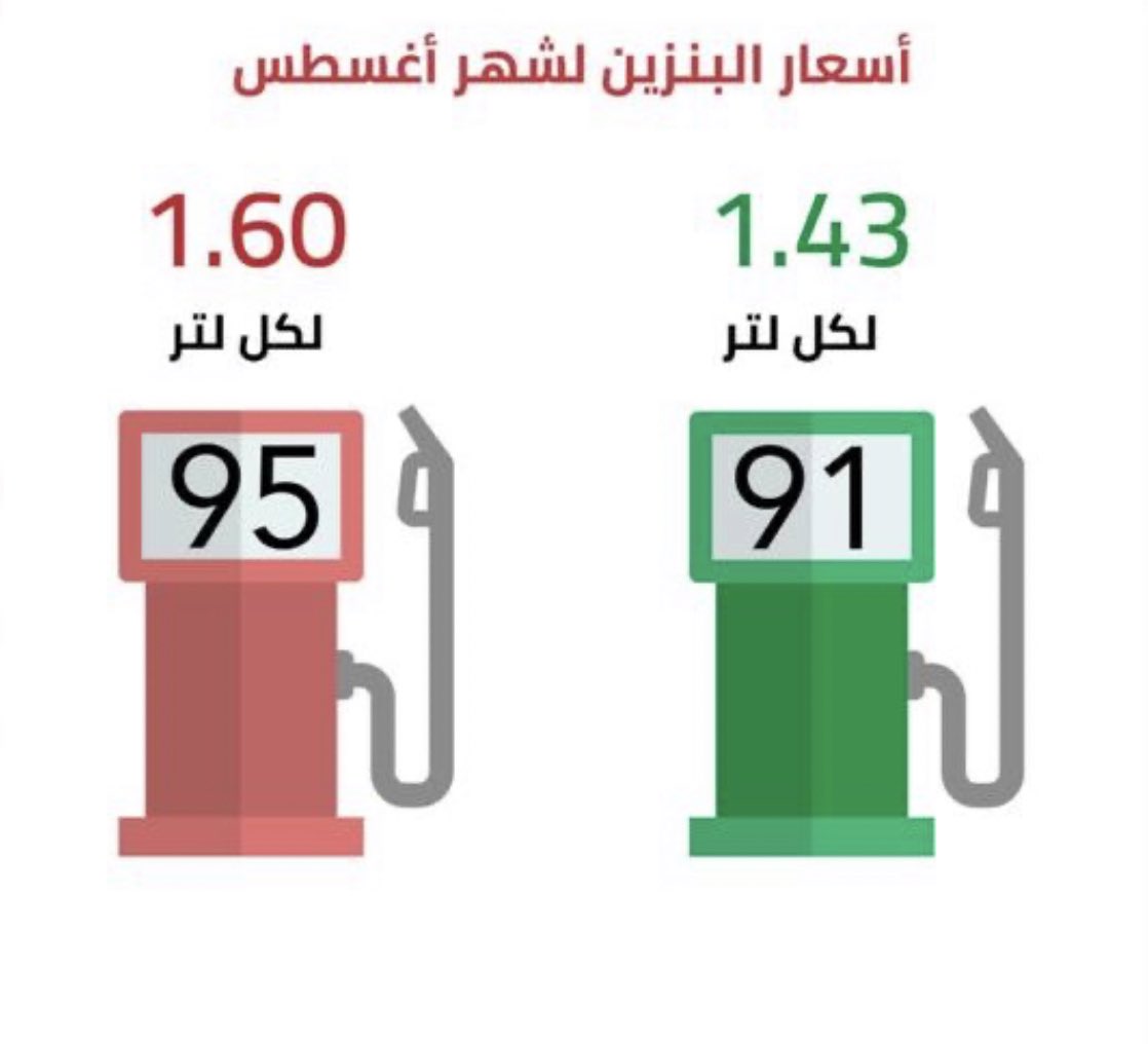صحيفة المناطق الإلكترونية عاجل أرامكو السعودية تعلن المراجعة الشهرية لأسعار البنزين لشهر اغسطس بنزين 91 1 43 ريال لكل لتر بنزين 95 1 60 ريال لكل لتر